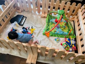 そんなわけで今では当然軽くてもっと使いやすいプラスチック製品のベビーフェンスがほとんどですが、やはり優しい【木の風合い】を感じながら育ってほしい・・・・