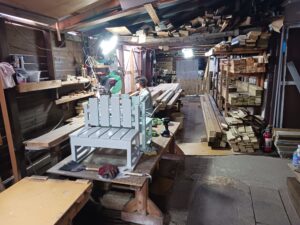 (かなり奥行きが細長い工房で、撮影しているカメラの位置は・・・ちょうど工房の真ん中あたりです)