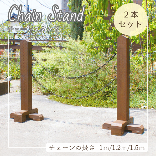 チェーンスタンド おしゃれ チェーンスタンド 2段 駐車場 ポール 進入禁止 ポール バリケード おしゃれ 木製 ナチュラル 庭 玄関 駐車場 境界 門扉 2本組
