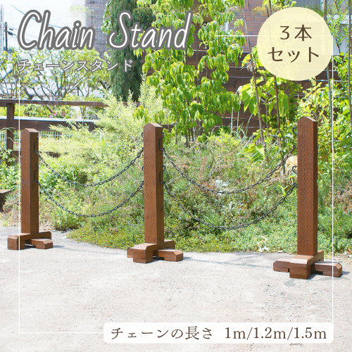チェーンスタンド おしゃれ チェーンスタンド 2段 駐車場 ポール 進入禁止 ポール バリケード おしゃれ 木製 ナチュラル 庭 玄関 駐車場 境界 門扉 3本組