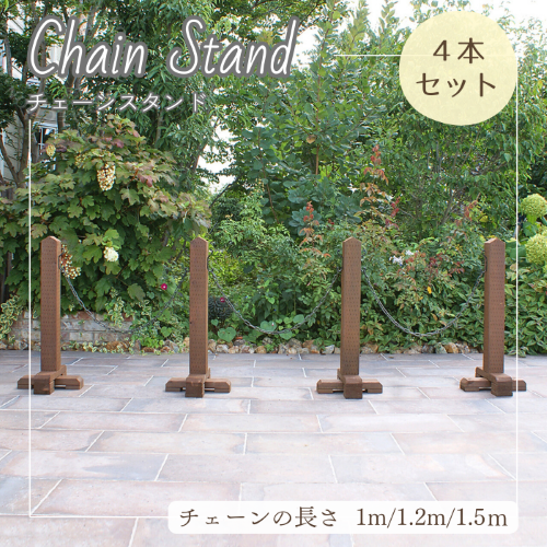 チェーンスタンド おしゃれ 駐車場 ポール 進入禁止 ポール バリケード おしゃれ 木製 ナチュラル 庭 玄関 駐車場 境界 門扉 屋外 重い 4本組