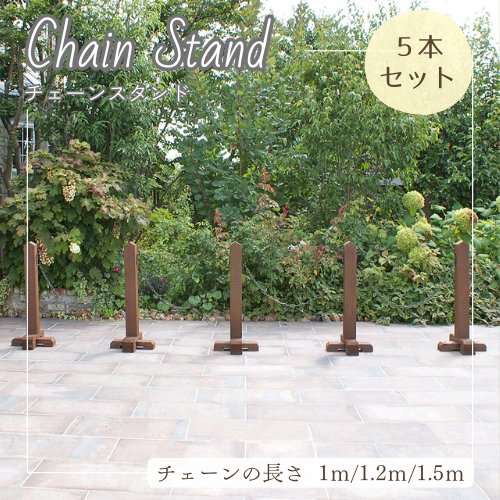 チェーンスタンド おしゃれ 駐車場 ポール 進入禁止 ポール バリケード おしゃれ 木製 ナチュラル 庭 玄関 駐車場 境界 門扉 屋外 重い 5本組